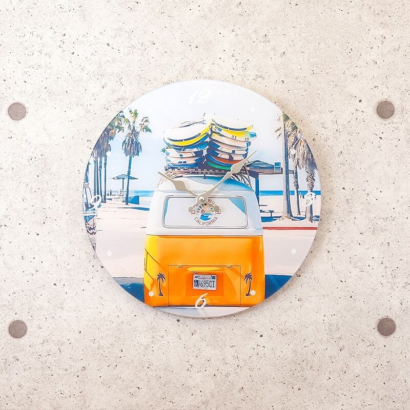 【掛時計】ガラスウォールクロック[Surfers Beach](Φ38) 商品コード : OS-2409