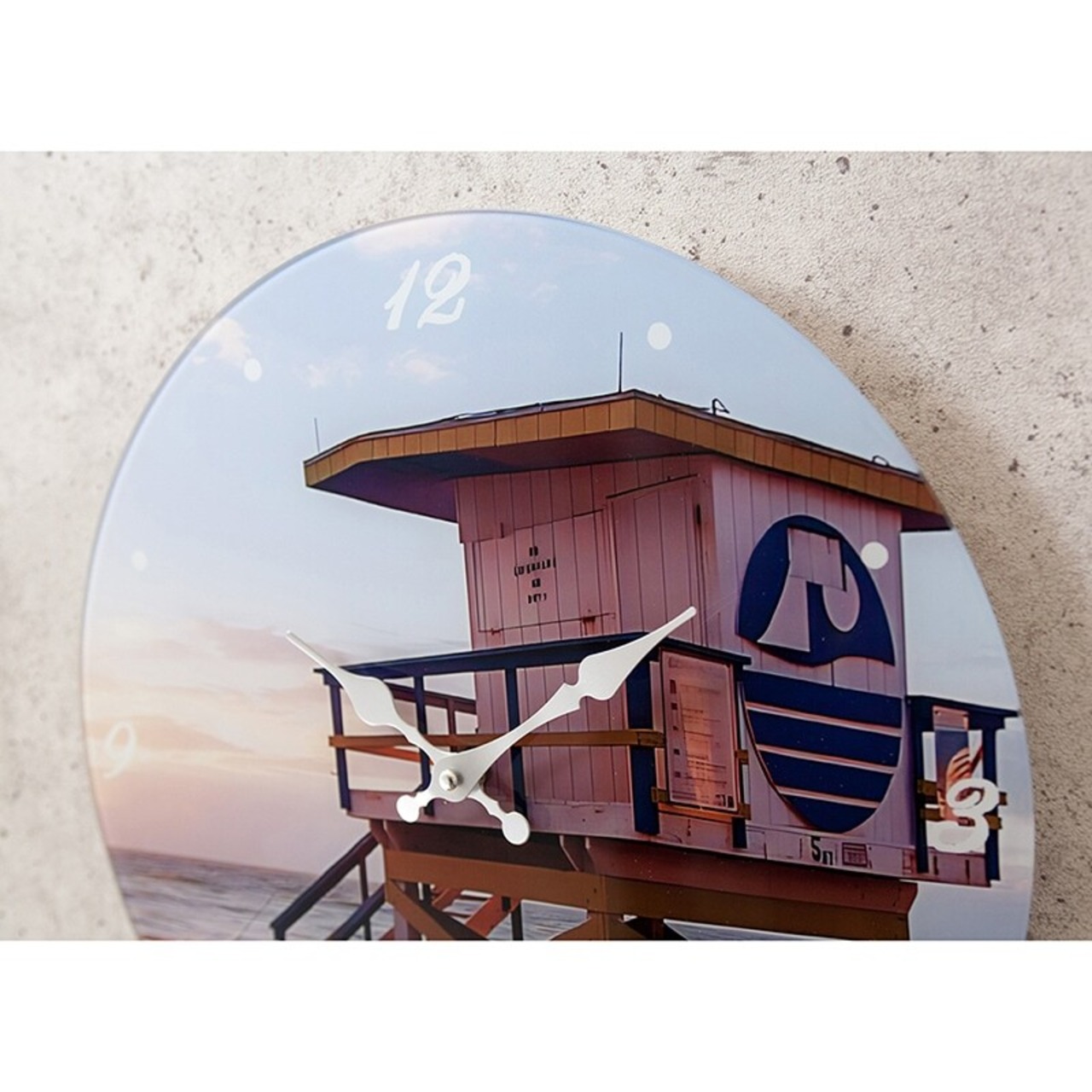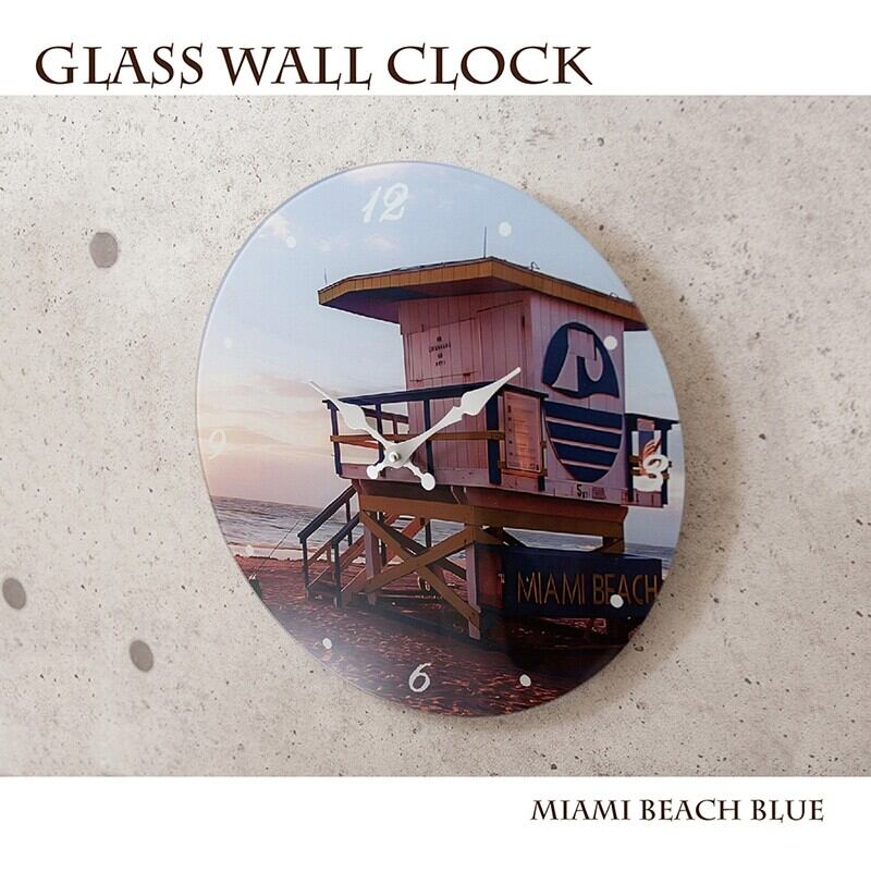 【掛時計】ガラスウォールクロック[MIAMI BEACH Blue](Φ38) 商品コード : OS-2411