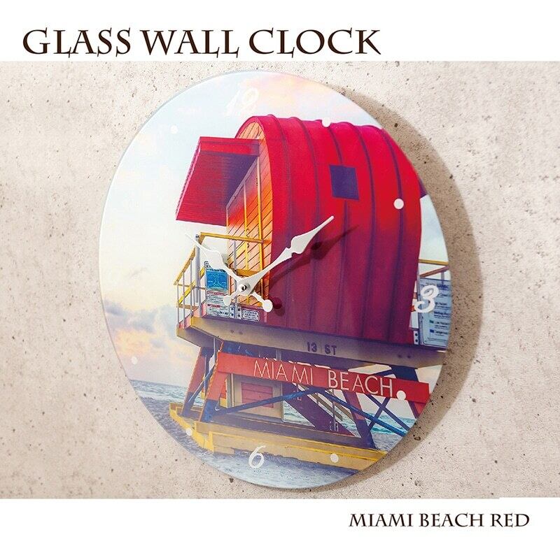 【掛時計】ガラスウォールクロック[MIAMI BEACH Red](Φ38) 商品コード : OS-2412