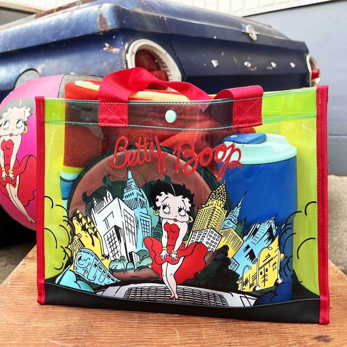 カラフルで透明なデザインは、どんなシーンでもおしゃれに決まります。アメリカンキャラクターのBETTYとGARFIELDが印象的に描かれたこのバッグは、普段使いやビーチ、ピクニックに大活躍!中身が見えるので、使い勝手も抜群です。