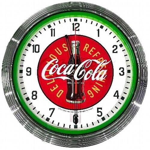 大人気の「コカ・コーラ」ネオネオンクロックがリニューアルして新登場!時計の盤面だけでなく、ガラス面にもデザインを施すことで奥行き感のあるデザインにバージョンアップしました!レトロアメリカンテイストのおしゃれな化粧箱に入っているのでプレゼントにもおススメ!