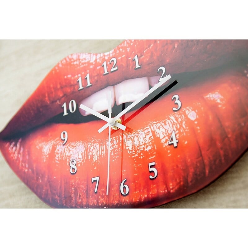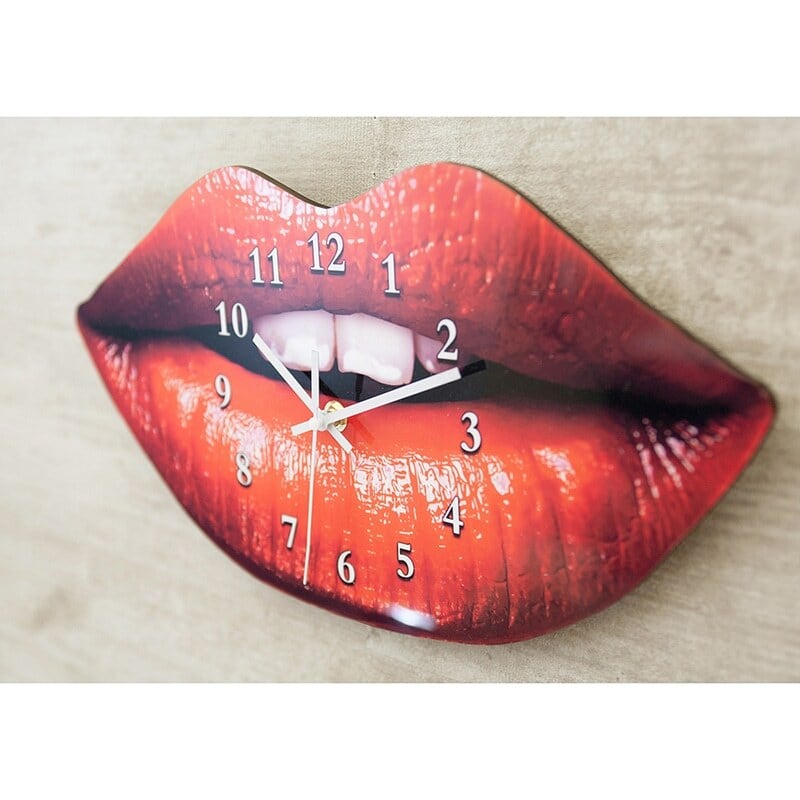 赤い唇の形をそのまま活かした、インパクト抜群の壁掛け時計。