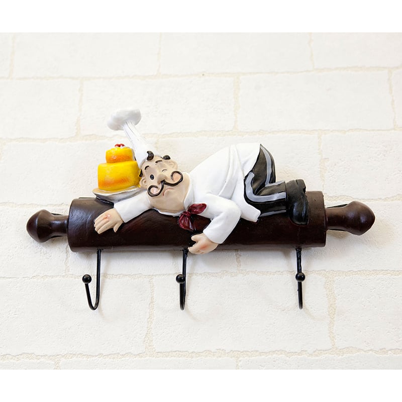 愛らしいおじさんシェフがフックに引っかかったものを取ろうとしているのが可愛いですね。
